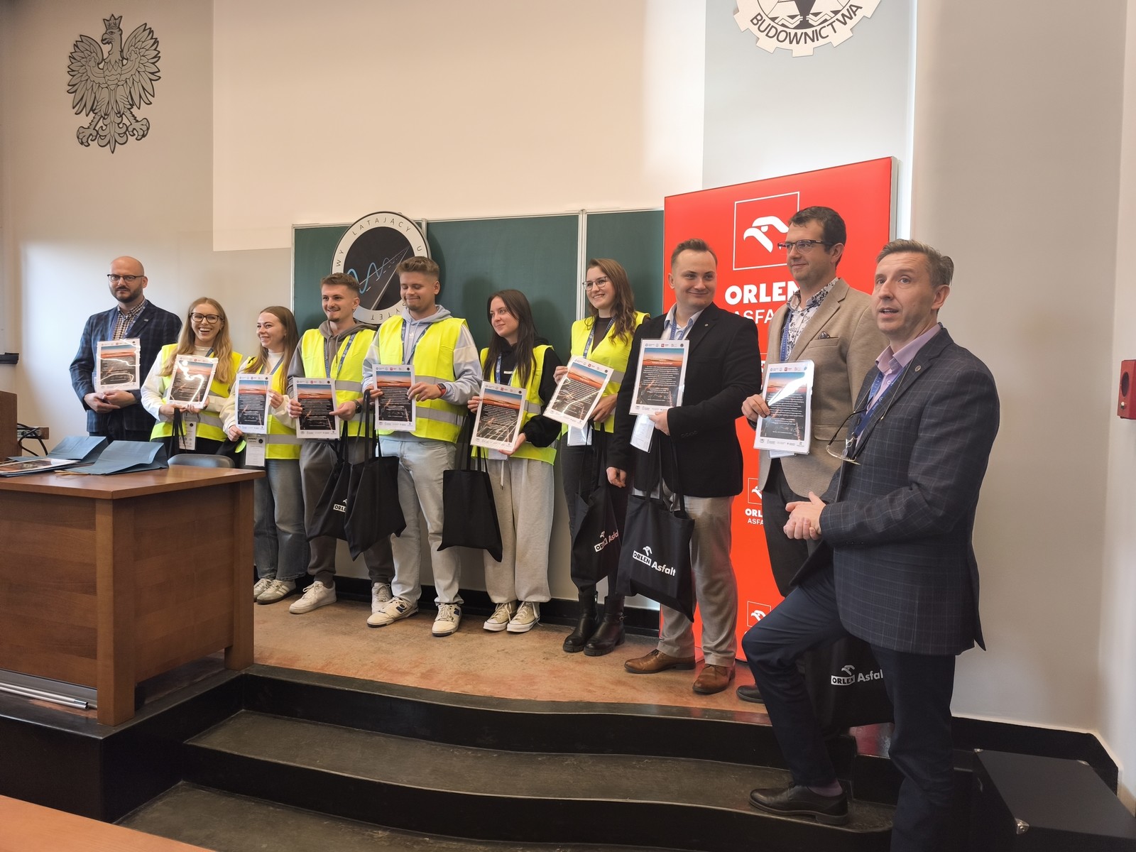 W dniach 15-17 października 2025r po raz VIII studenci i prowadzący z Politechniki Śląskiej, Krakowskiej, Rzeszowskiej, Lubelskiej, Białostockiej, Gdańskiej oraz pracownicy Biura Rozwoju i Wsparcia Wdrożeń Technologii Asfaltowych Orlen Asfalt uczestniczyli w warsztatach poświęconym tematyce drogowej. W ramach warsztatów studenci poznali nowe technologie oraz metody badań asfaltów drogowych, sposoby inwentaryzacji pasa drogowego metodą fotogrametryczną przy użyciu dronów, jak również zapoznali się z metodyką klasyfikacji uszkodzeń konstrukcji nawierzchni oraz metodami ich napraw.