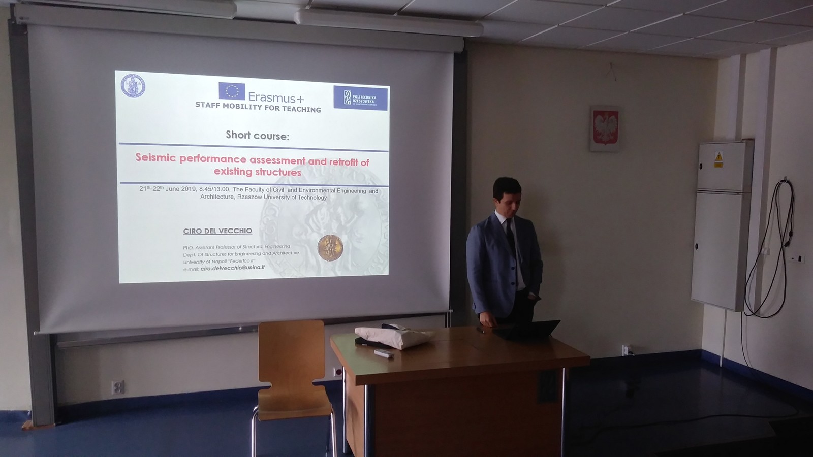 Oprócz wykładów dla studentów Dr. Ciro Del Ceccio zwiedził Wydziałowe Laboratorium Badań Konstrukcji WBIŚiA PRz oraz rozmawiał z pracownikami Zakładu Dróg i Mostów o dalszych możliwościach współpracy pomiędzy Politechniką Rzeszowską i Uniwersytetem Fryderyka II na płaszczyźnie naukowej i dydaktycznej.